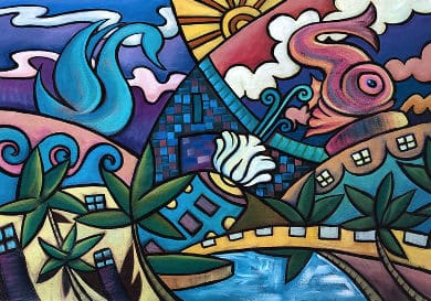 Marco has found inspiration in the detailed paintings of the Alebrije’s wooden mythical animals popularized in Mexico in the ’70s and ’80s. He is also inspired by ancient Mayan Art and famous Mexican Artists Rufino Tamayo, Francisco Toledo, and Diego Rivera.