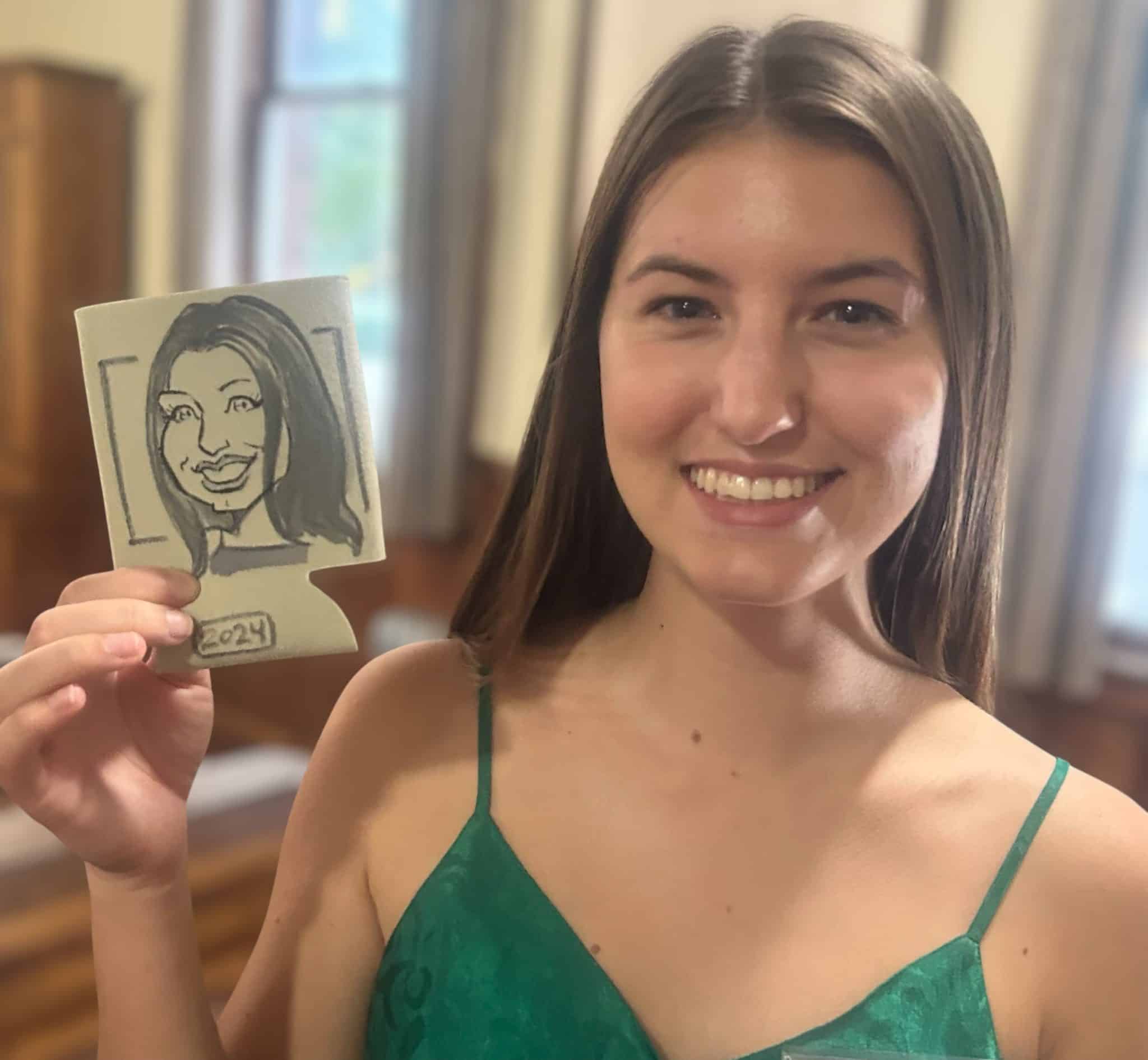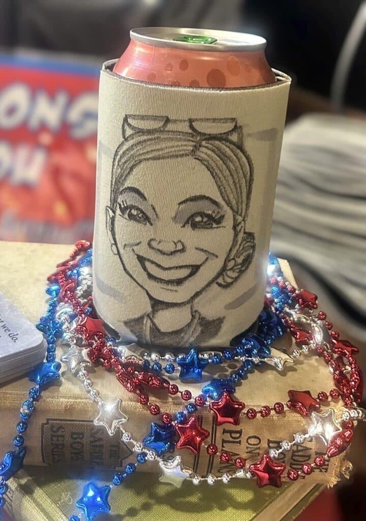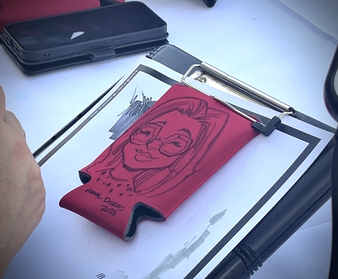 The result is a one-of-a-kind, personalized souvenir that’s both practical and memorable. Guests get to take home a custom caricature while keeping their drinks perfectly chilled – a unique combination of function and fun that always sparks laughter and conversation!